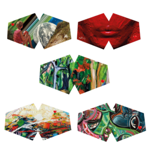 Three-layer mask. Double anti-fluid, antimicrobial fabric and an inner layer of 100% cotton for greater comfort and breathability. Measuring 9,5 x 5,5 inches, for adults and 7,5 x 4,5 inches for children (up to 6 years). Washable and reusable up to 70 wash cycles.